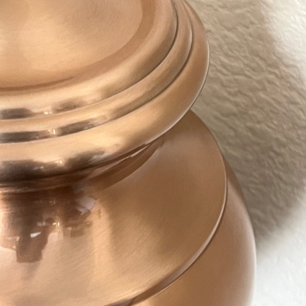 Finished in rich copper and a luxurious gloss, the Linden is a traditional brass urn with modern styling. Its name is gleaned from the location of a historic crematory where urns of this style are prevalent - reviving a shape that has been used to honor the dead for over a century.