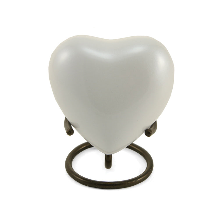 The Full Size Trinity Urn measures 10”H x 6.8” Diameter (200 cubic inches), the Keepsake Mini is 3”H x 1.7” Diameter (3 cubic inches), and the Keepsake Heart is 2.7”H x 2.9”W x 1.6” Diameter (3 cubic inches).